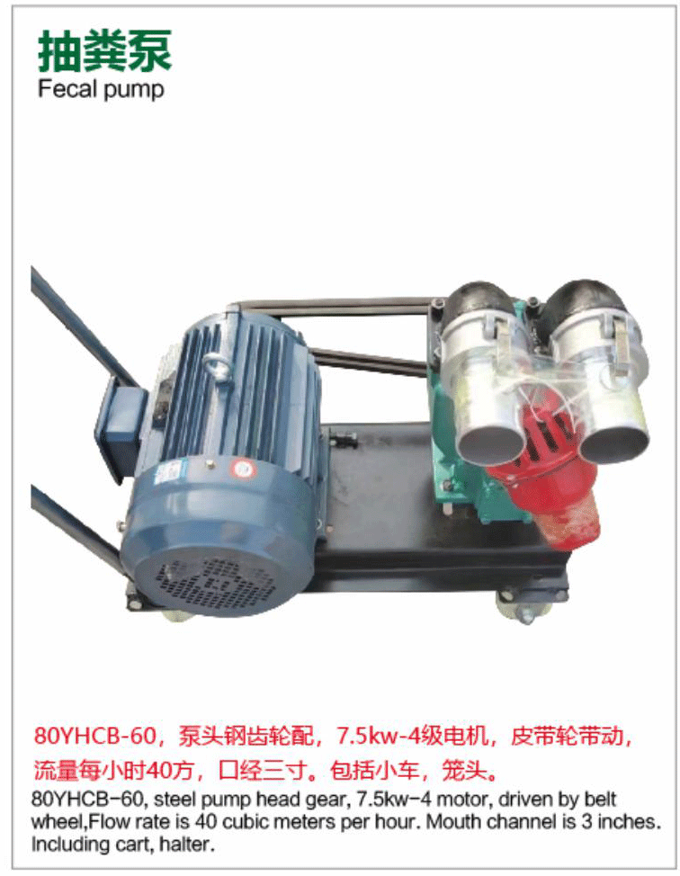 Large Fecal Pump - Explosion-Proof High-Flow Gear Fecal Pump (80YHCB-60, 7.5kW, 40 m³/h) Product Overview The Huying Pump Industry Large Fecal Pump (80YHCB-60 model) is a heavy-duty industrial-grade explosion-proof gear pump specifically engineered for pumping high-viscosity, solids-laden fecal matter, sewage, biogas slurry, and sludge. Equipped with a 7.5kW 4-pole explosion-proof motor, steel gear pump head, belt-drive system, and 3-inch large ports, it delivers a massive…